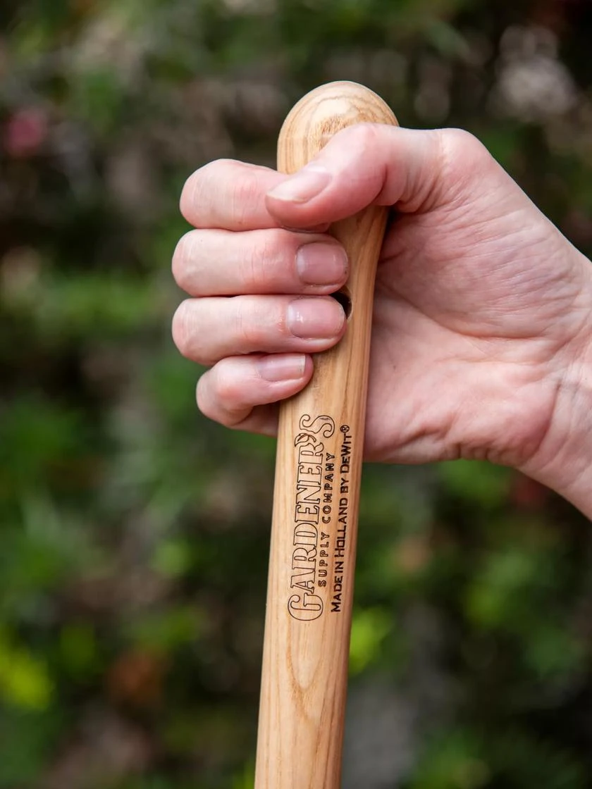Get two favorite tools in one — a swan-neck hoe on one side and a three-prong cultivator on the other. This cultivator has an 18″ wooden handle, making it perfect for loosening and smoothing soil in raised beds. Like our other Gardener’s Lifetime hand tools, it’s made in Holland from the finest high-carbon Swedish boron steel. Unlike flimsy tools that are stamped from thin stainless steel, this cultivator is ready for a lifetime of use by serious gardeners. To give it extra strength and durability, a metal tang extends into the handle, which is securely fastened with a welded socket. The handle is made of sustainably grown European ash hardwood. Gardener’s Lifetime Tools are handmade for us by DeWit — a fourth-generation, family-owned business that has been crafting fine gardening tools for more than a century.